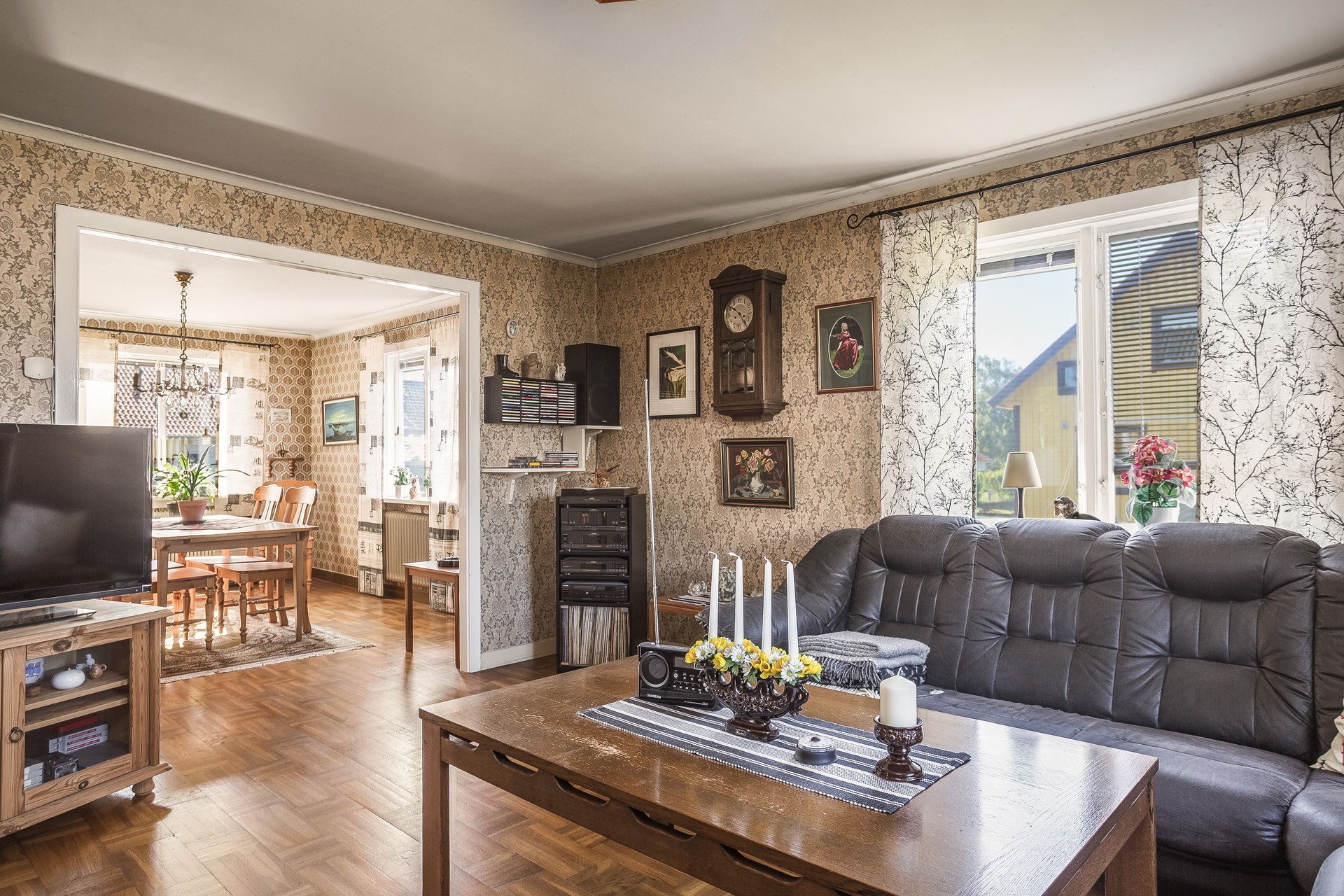 Vardagsrum med öppenhet till matrum